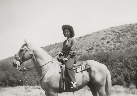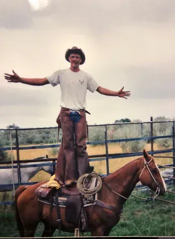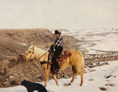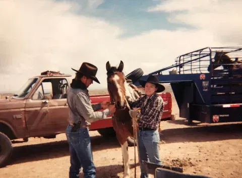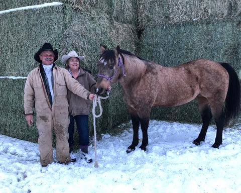 Grandpa Dick and Grandma Sue with their stallion Kando
